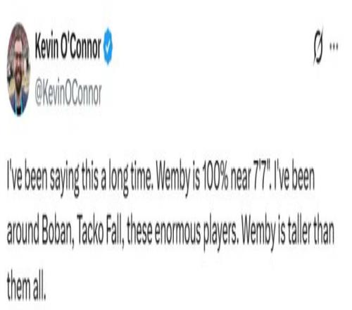 隨后名記奧康納轉(zhuǎn)發(fā)社媒動態(tài)表示:“我早就說過這話!文班亞馬絕對接近2米31,我親眼見過博班、法爾這些巨人中鋒,但文班站在他們面前時,他比所有人都高出一截!”