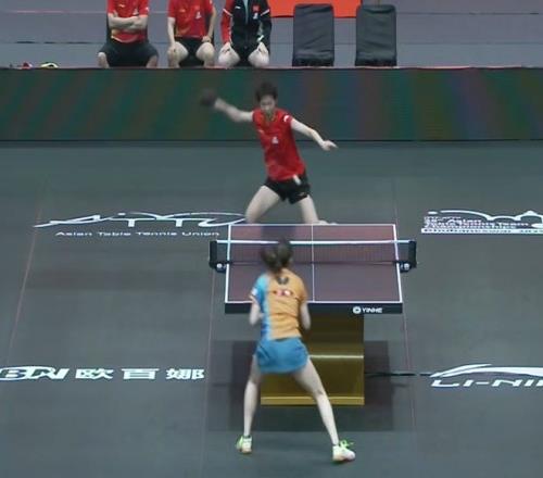 第一盤,王曼昱10-12、11-3、11-6、11-3戰(zhàn)勝橋本帆乃香,為中國(guó)隊(duì)先得一分。
