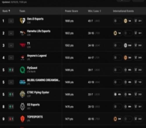 拳頭官網(wǎng)更新全球戰(zhàn)隊(duì)實(shí)力排名:GENHLET1前3AL第四BLG不如FLY