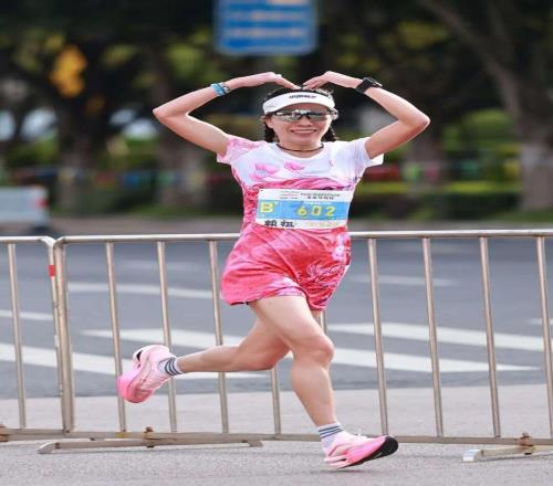 談起自己國(guó)慶期間玉溪馬拉松的比賽,她表示因?yàn)橘惽笆軅麤](méi)怎么練(也沒(méi)怎么跑速度),所以純把玉溪當(dāng)作國(guó)慶節(jié)后當(dāng)周周末比賽前的一場(chǎng)速度跑。比賽當(dāng)天想著國(guó)慶中秋雙節(jié),她還特意穿了一條紅色的裙子。熱鬧的賽道氛圍、美麗的風(fēng)景,讓她跑得很開(kāi)心。伍玲特意提了下賽前一天去領(lǐng)參賽包時(shí)看到的晚霞,“反正整個(gè)人心情都挺好的,整個(gè)比賽呢,也按照大致的一個(gè)預(yù)期配速把它順利跑完了,沒(méi)有因?yàn)閭〉脑蚨绊懙阶约骸!?/p>