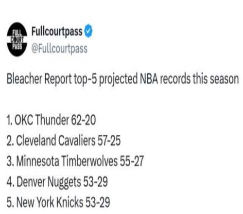 Bleacher Report預(yù)測戰(zhàn)績:62勝20負,聯(lián)盟第一。