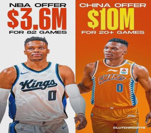 其實無論CBA或其他聯(lián)賽開價多少,對于生涯至今總薪資收入高達3.46億美元的威少來說都是九牛一毛,且人家當前最主要目標還是重返NBA甚至壓根沒有前往海外打球的想法。