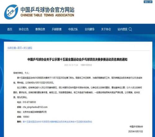 北京時(shí)間10月15日,第十五屆全國(guó)運(yùn)動(dòng)會(huì)乒乓球項(xiàng)目決賽參賽運(yùn)動(dòng)員名單公布。名單囊括了國(guó)內(nèi)所有頂尖選手,馬龍、樊振東、王楚欽、孫穎莎、陳夢(mèng)等主力隊(duì)員悉數(shù)在列。這場(chǎng)11月7日將在澳門開賽的 “乒乓球地表最強(qiáng)賽事”,已然提前點(diǎn)燃了期待。