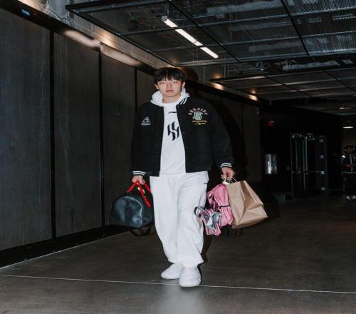 賽前,開拓者官方更新社媒,曬出了賽前的球員入場照,中國球員楊瀚森依舊帶著粉色小書包。