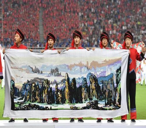 新華社照片,長沙,2025年9月7日 9月7日,張家界隊在開幕式上。 今年9月至12月,湖南14個市州組隊出征“湘超”,周五、周六、周日為比賽日。13輪單循環(huán)制常規(guī)賽后,前八名進入淘汰賽并最終決出冠軍。 新華社記者 陳振海 攝