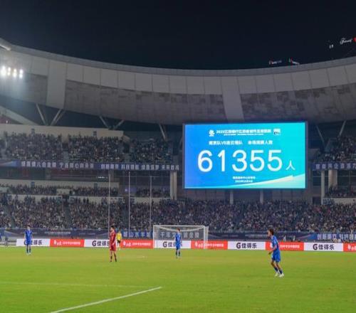 10月4日,大屏幕顯示本場比賽共有61355名球迷到場觀賽。 新華社記者 李博 攝