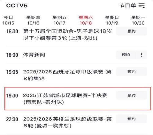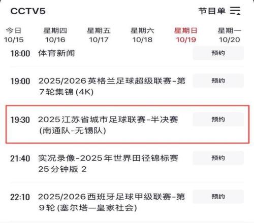 央視五套在18日、19日黃金時段選擇直播“蘇超”。