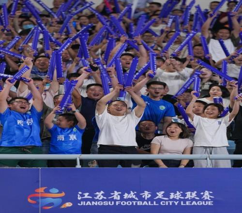 10月4日,球迷在現(xiàn)場為球員加油助威。 當日,在江蘇南京舉行的2025江蘇省城市足球聯(lián)賽(“蘇超”)四分之一決賽中,南京隊主場與連云港隊在常規(guī)時間1比1戰(zhàn)平,通過點球大戰(zhàn),南京隊以5比3的總比分戰(zhàn)勝連云港隊,晉級半決賽。 新華社記者 李博 攝