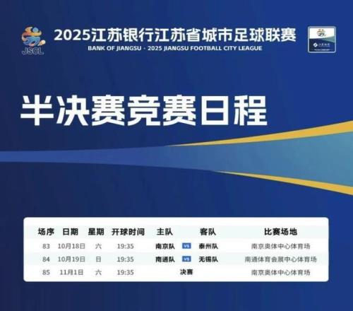 本周末,“蘇超” 即將迎來半決賽。10 月 18 日,南京隊交鋒泰州隊,“蘇超” 首場半決賽將在南京奧體中心球場打響;10 月 19 日,南通隊迎戰(zhàn)無錫隊,也將在南通體育會展中心體育場如約舉行。究竟是南京隊 “復仇” 成功,還是泰州隊繼續(xù)延續(xù) “黑馬” 傳奇,無論結果如何,這屆 “蘇超” 半決賽都吊足了觀眾的胃口。